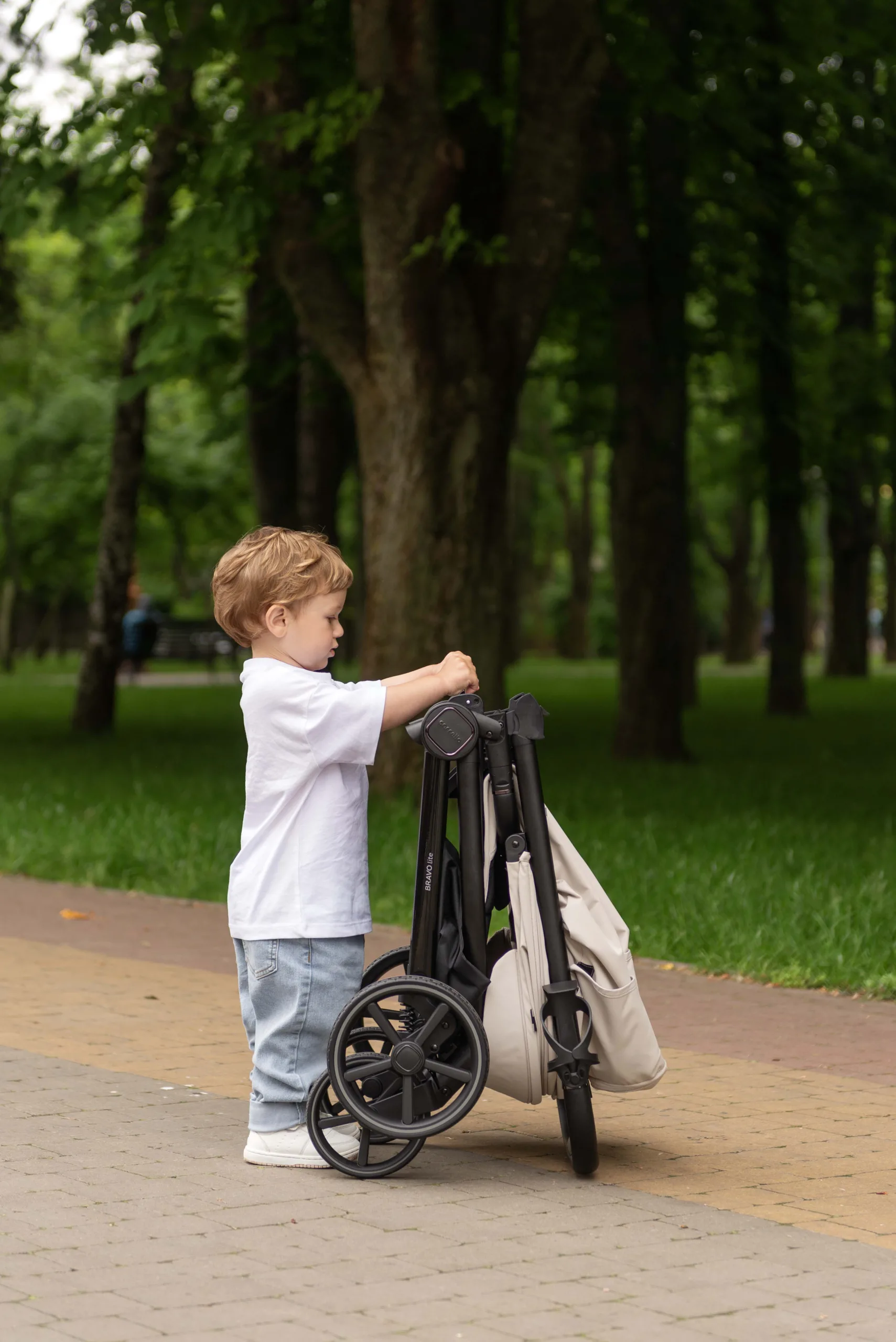 ✔️Коляска складається сидінням усередину – текстиль сидіння захищений від забруднень.
