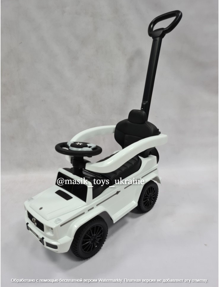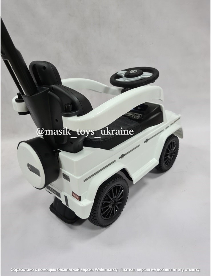 Машинка для катання Caretero Mercedes G350 D з батьківською ручкою – це ліцензований автомобіль для їзди. Його зовнішній вигляд відображає зовнішній вигляд культових автомобілів G-класу.
