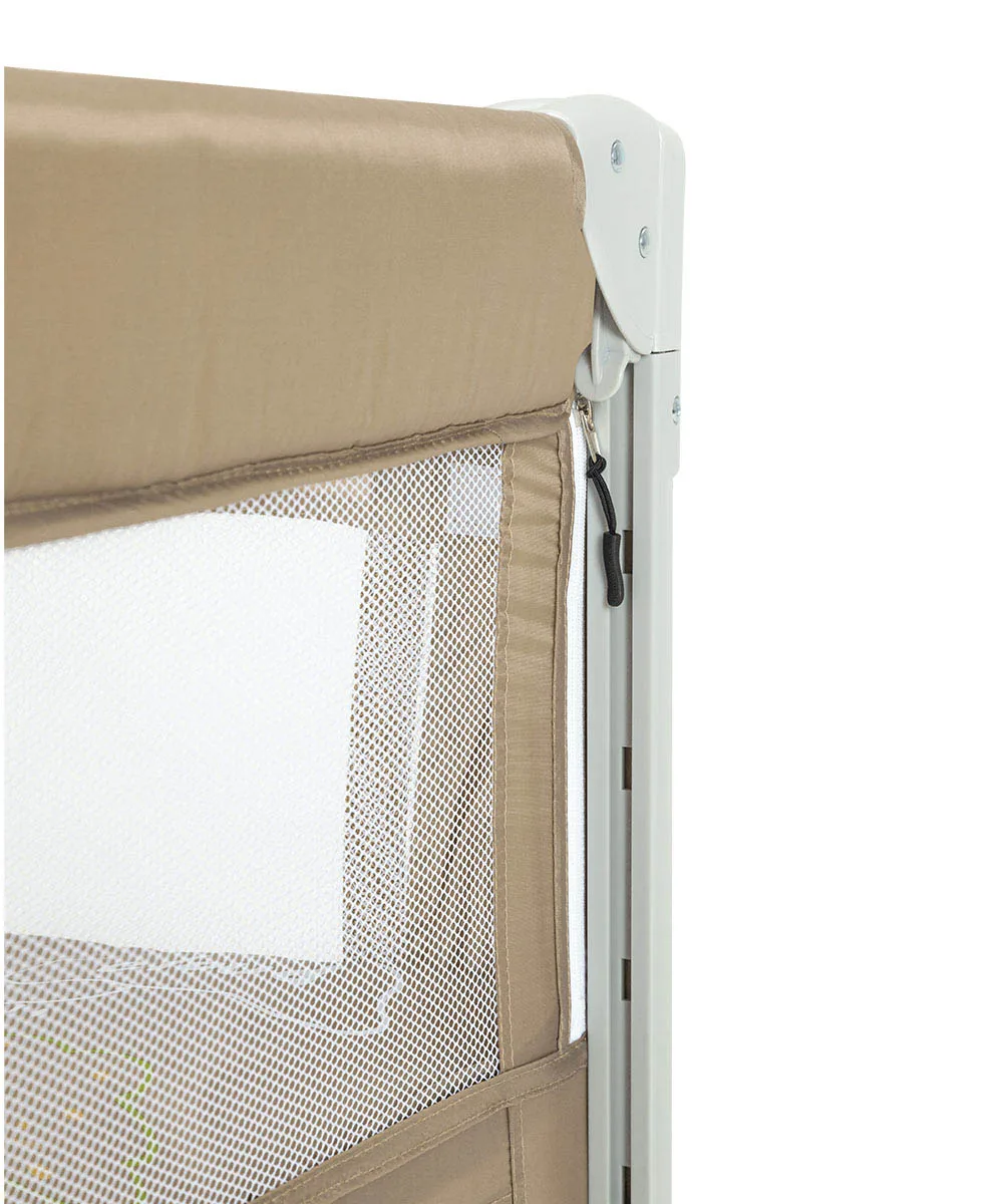 Опустіть передню панель і використовуйте Porta як приставне ліжечко для спільного сну з малюком. Приставне ліжечко-манеж Porta легко приєднується до ліжка батьків.