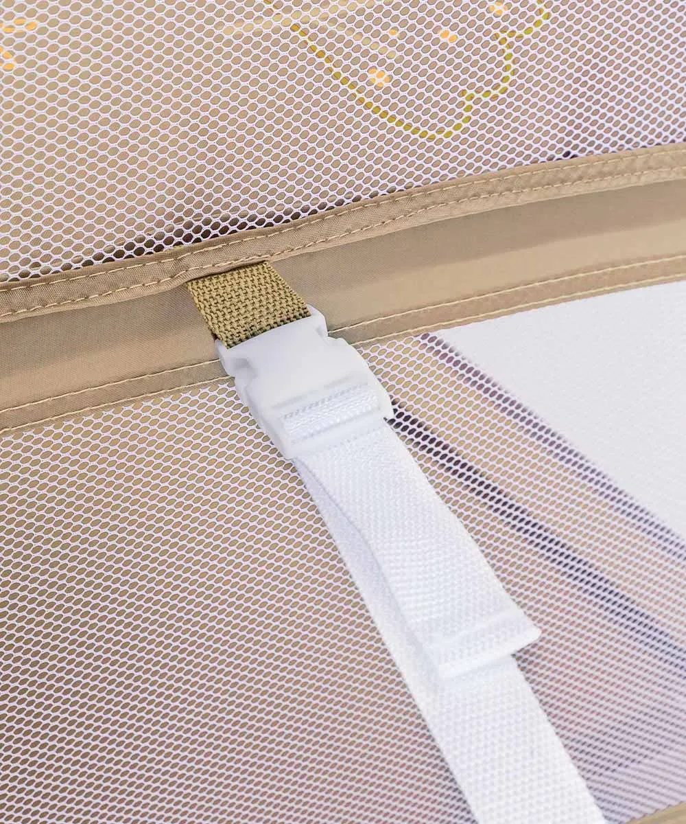 Щоб під час нічного сну ліжечко з дитиною було надійно закріплено поруч з батьківським ліжком — використовуйте кріпильні ремені, які входять у комплект.