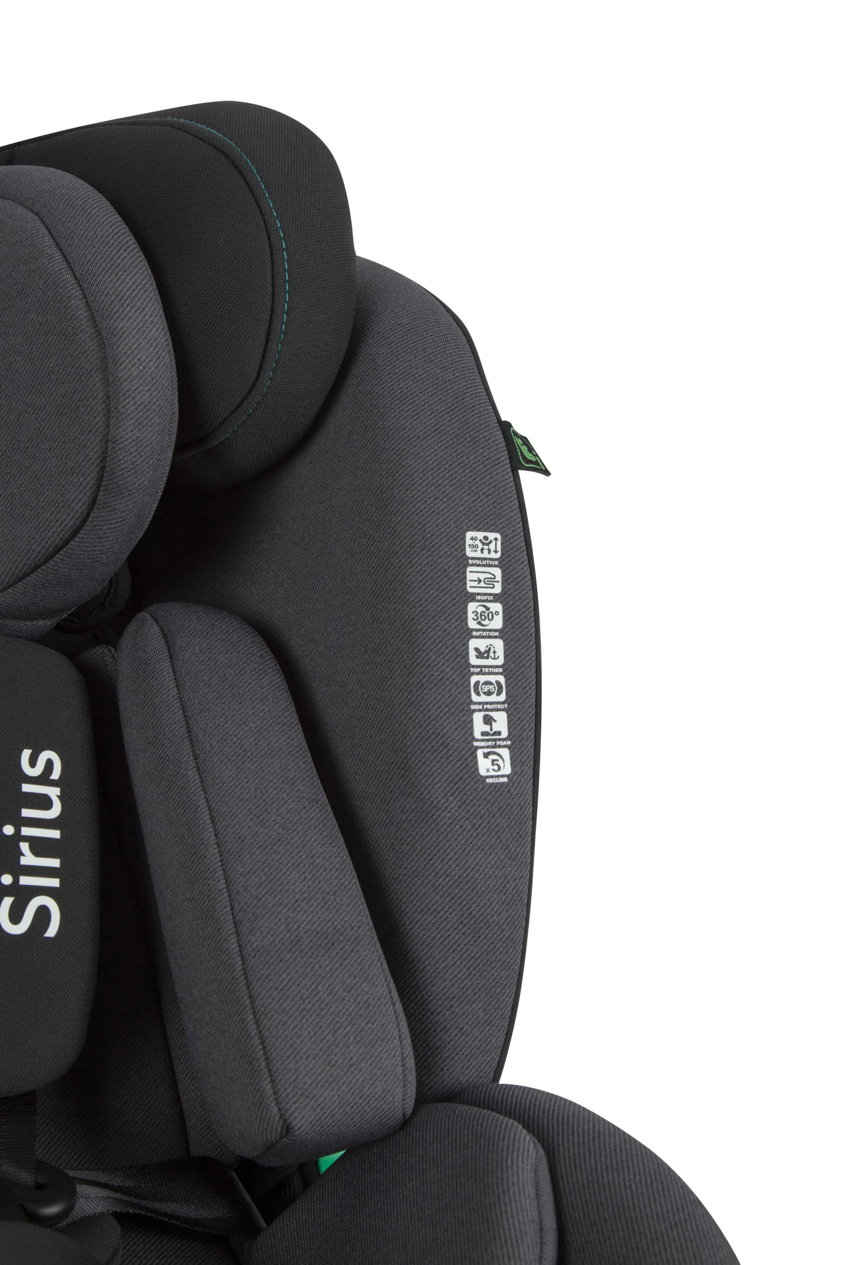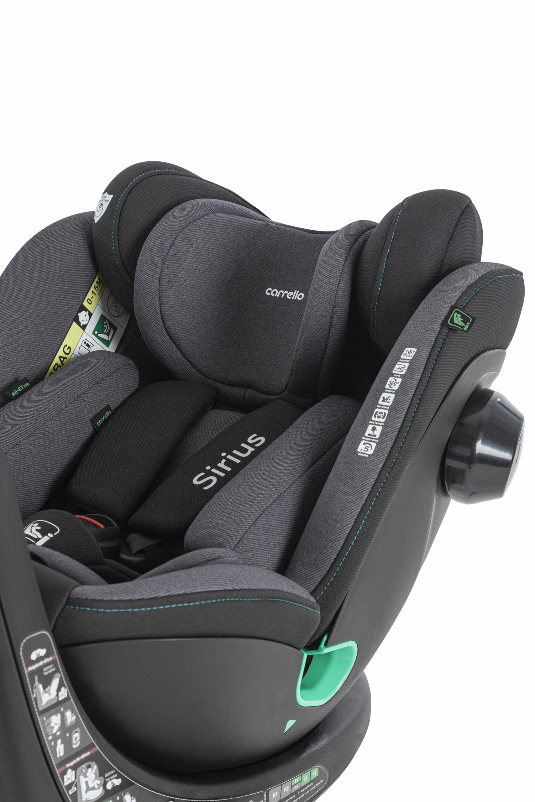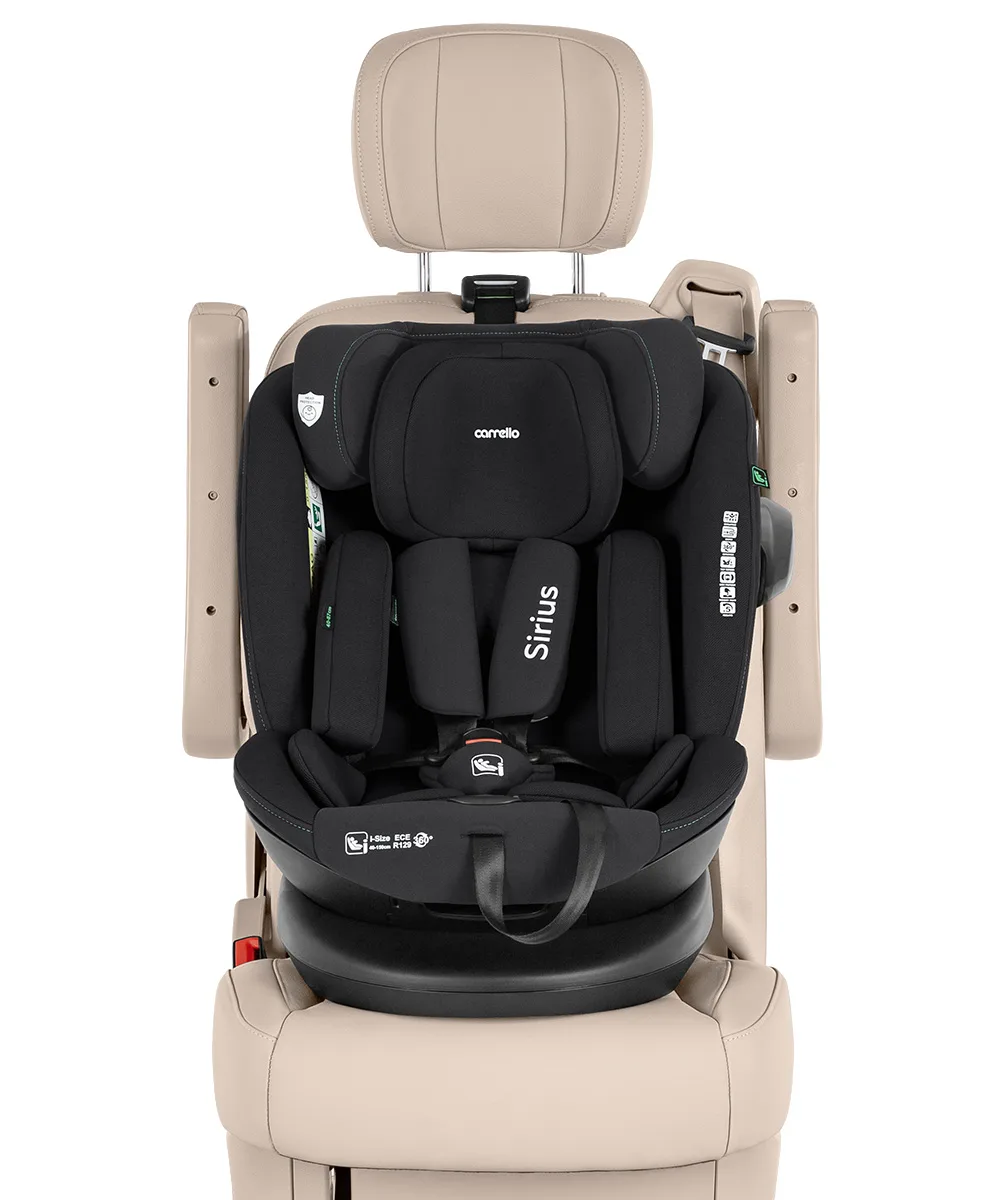 Автокрiсло Carrello Sirius для дітей 40-150 см. Обладнано системою Isofix, опорною базою, системою кріплення Top Tether, захистом від бічних ударів і поворотом на 360°.