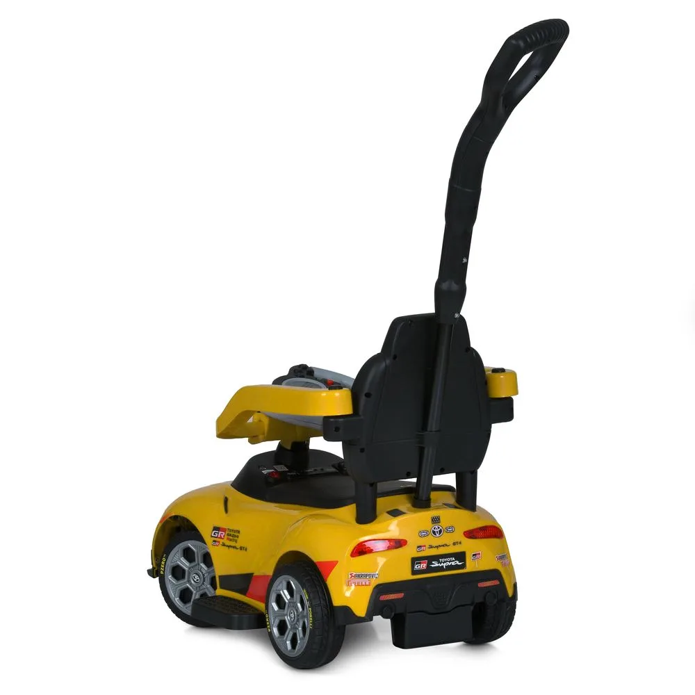 Каталка-толокар з батьківською ручкою, яка керує передніми колесами, пульт у комплекті, сидіння мʼяке, МР3, вхід для флешки