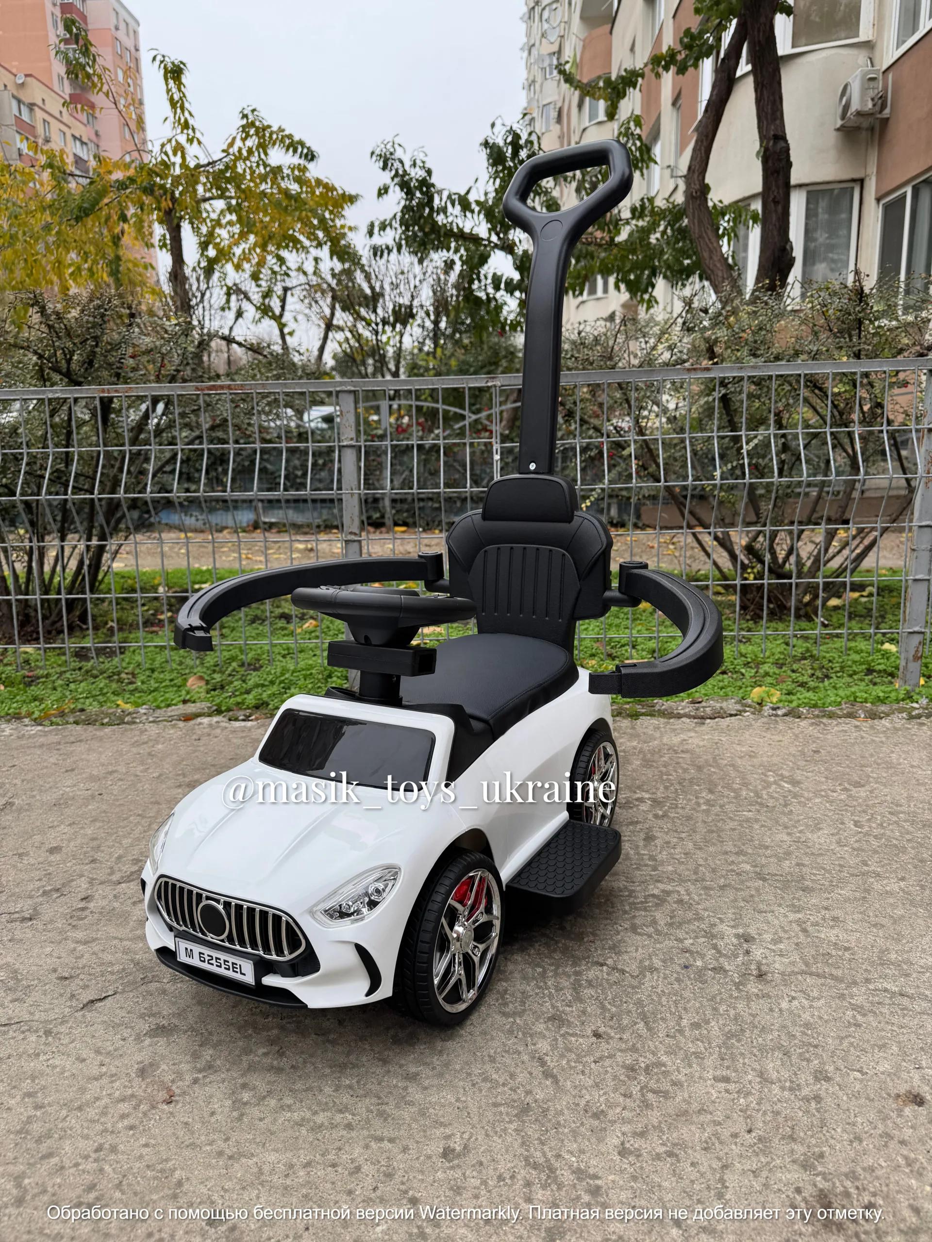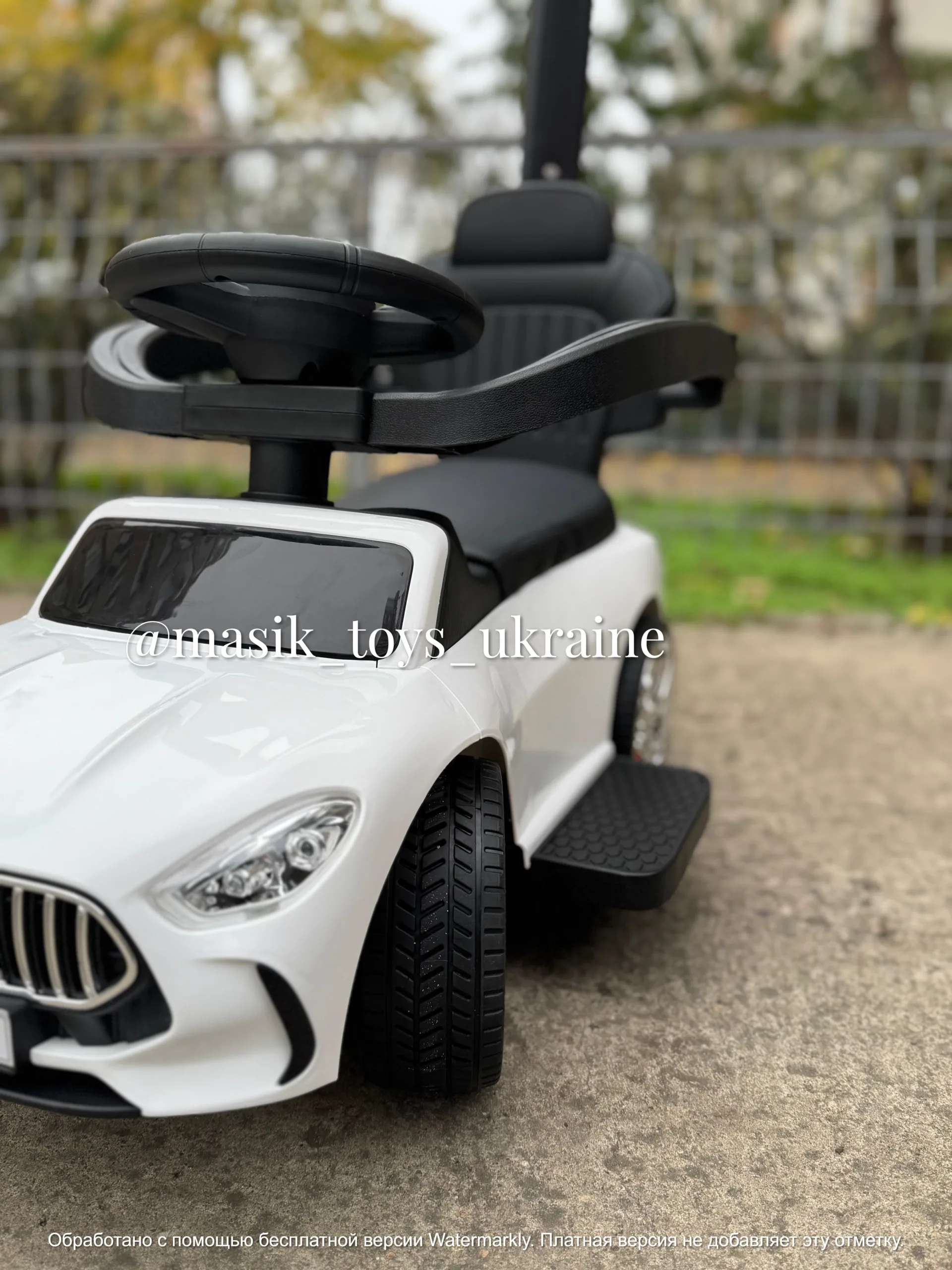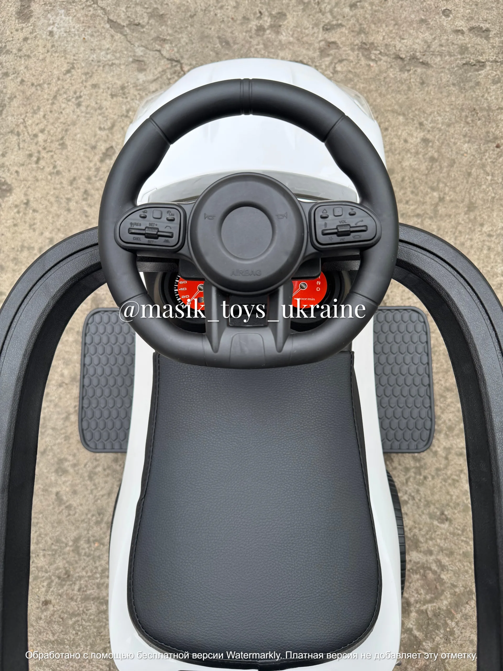 ✔️Музика на кермі (українська), можна підʼєднати блютуз через телефон и слухати свої пісні 🎶, передні фари світяться коли грає музика, працює від бат-к 3 шт. АА (у комплект не входять)