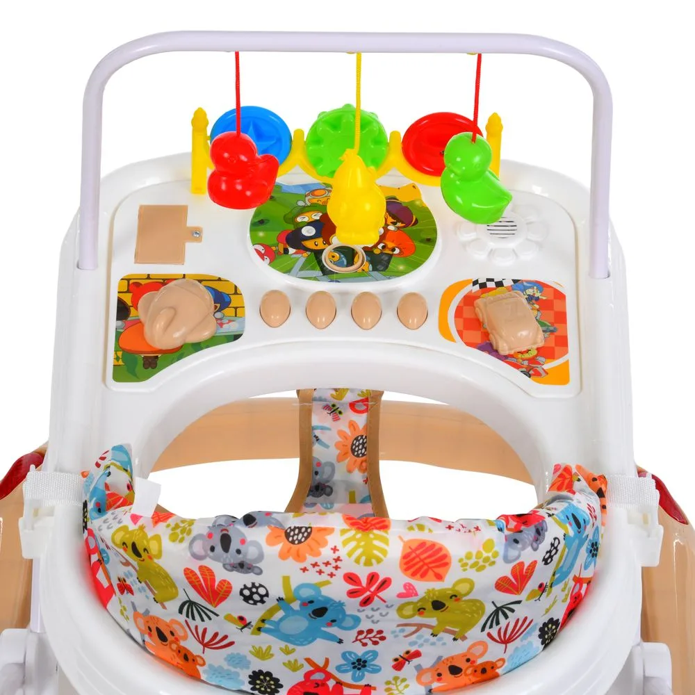 Ходунки з дугою з іграшками, музикою, працюють від батарейок, колеса зі стопором