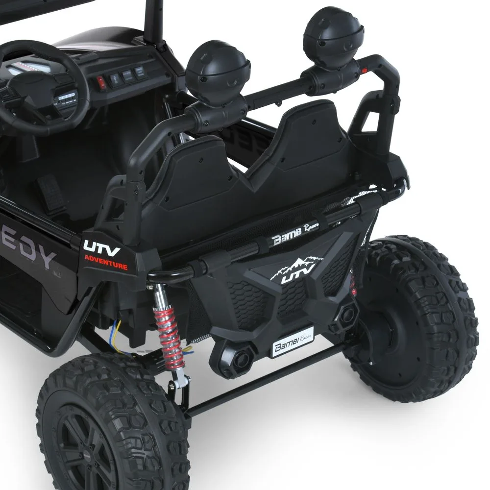 ✔️ Комфортне двомісне сидіння з екошкіри та ременями безпеки