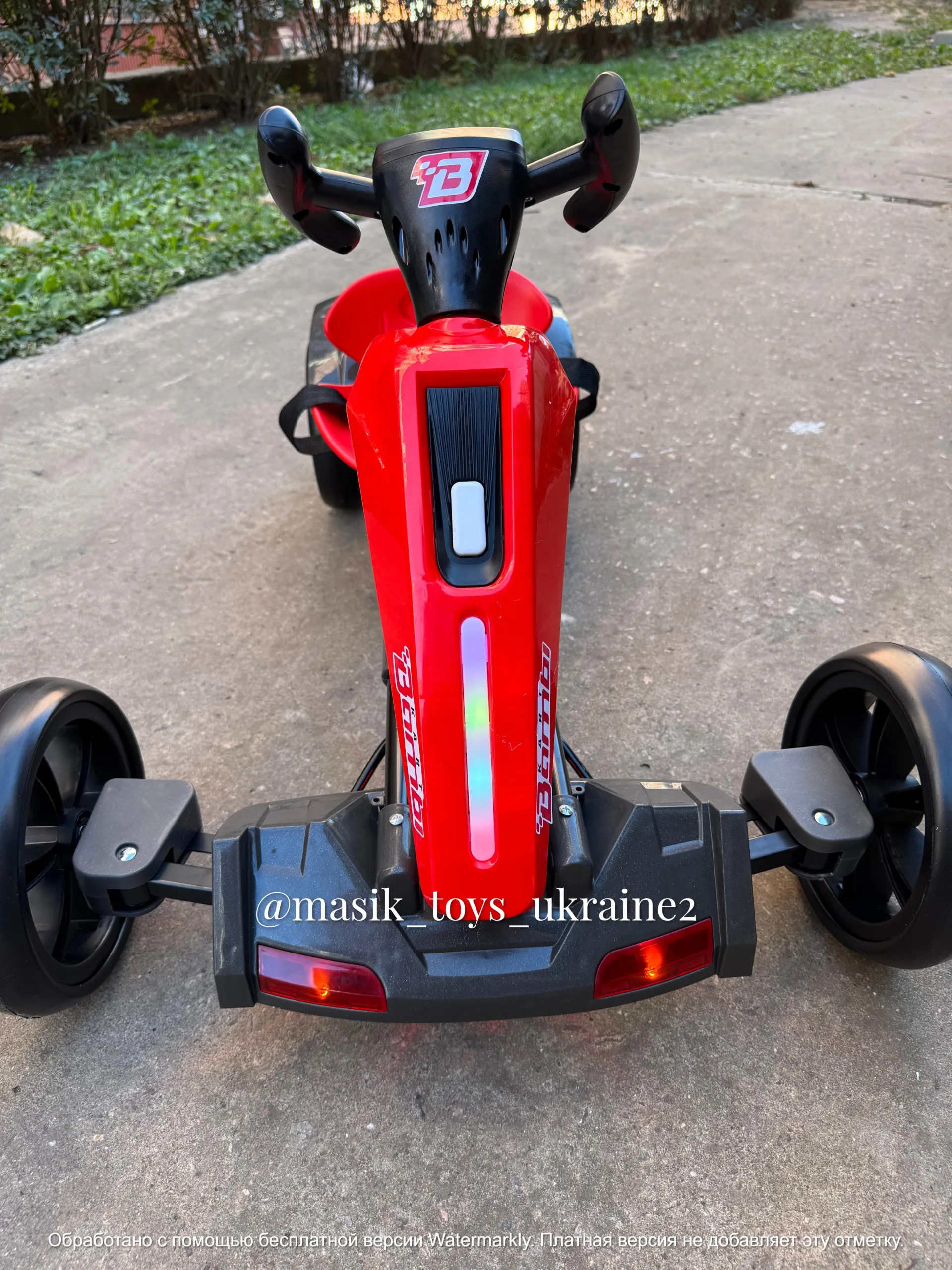 ✔️Передні фари світяться, підсвічування корпусу та низу карта, є кнопка вмик/вимик світла, музика