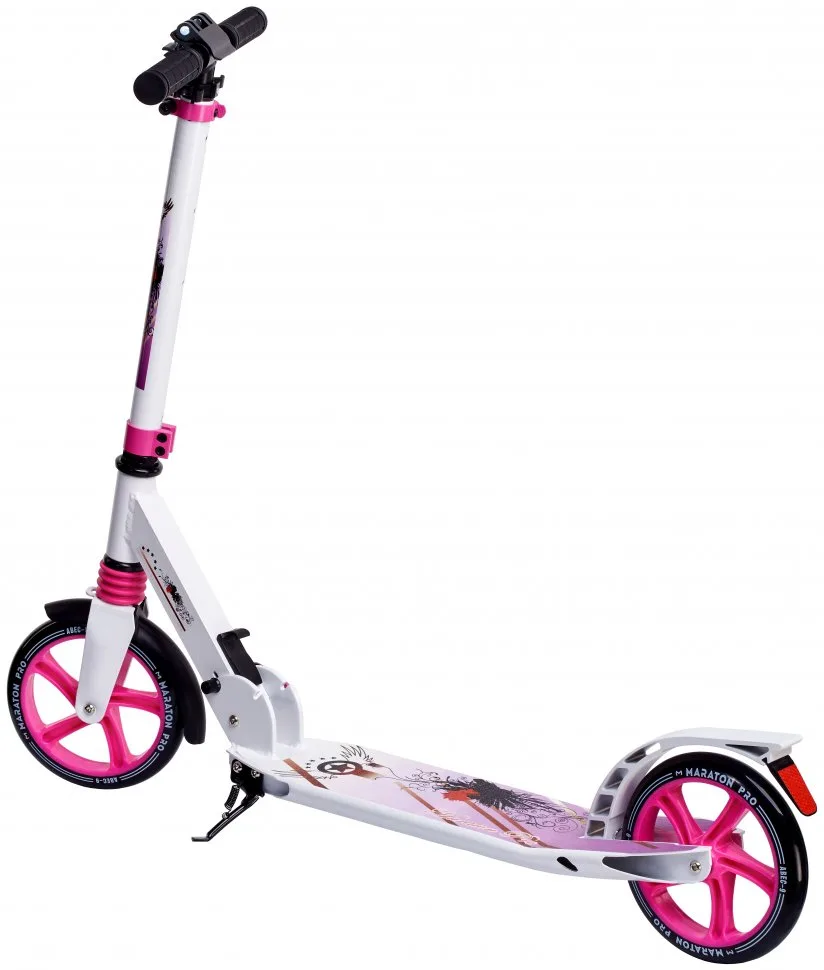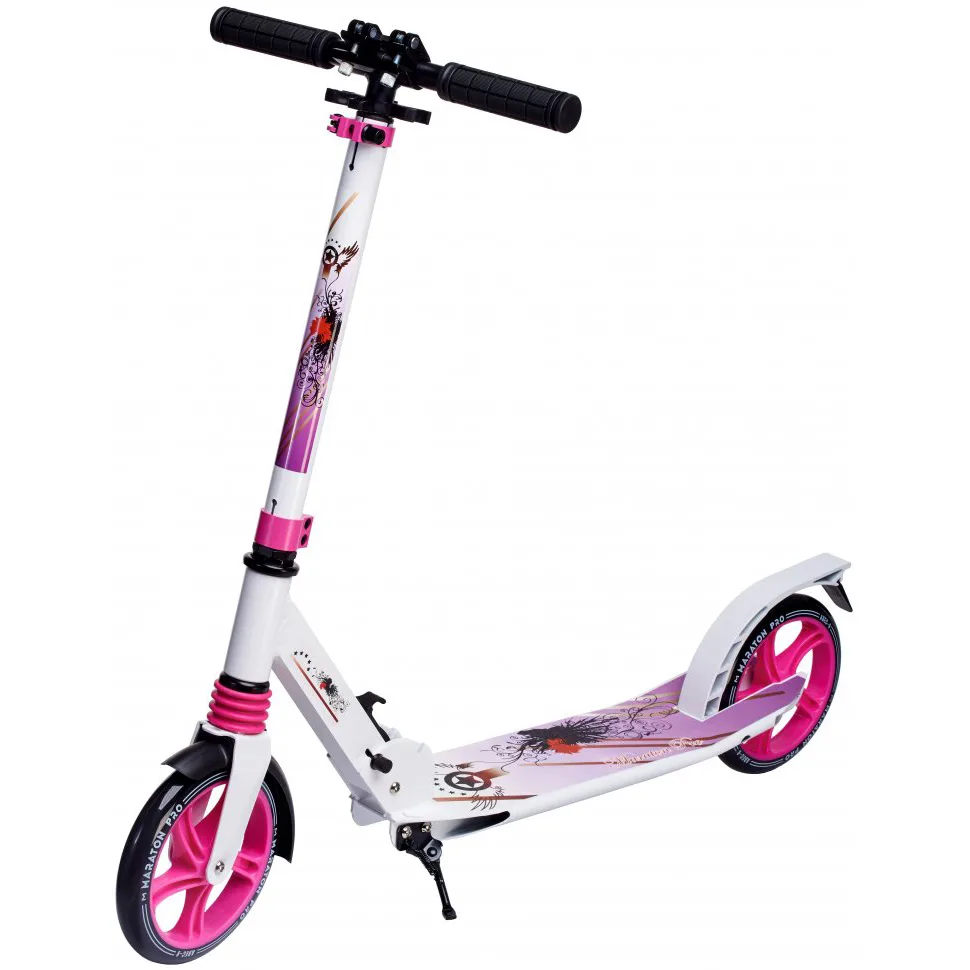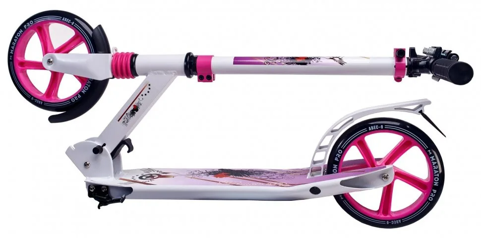 Двоколісний самокат Maraton Pro відрізняється не тільки стильним дизайном, він досить міцний та надійний. Рама самокату представлена металом алюмінію. Невелика вага дозволить дитині легко переносити самокат через перешкоди. Стійкі колеса з поліуретану гарантують швидкість та плавність ходу. Зберігати та транспортувати самокат дуже просто – адже він складається до компактних розмірів.