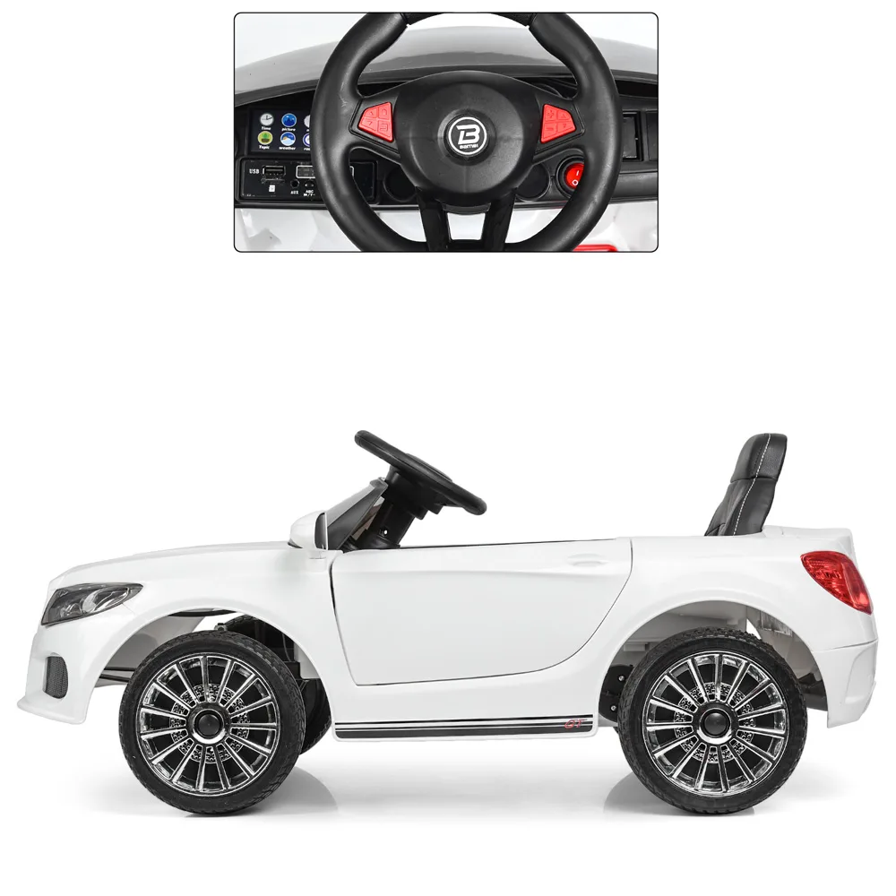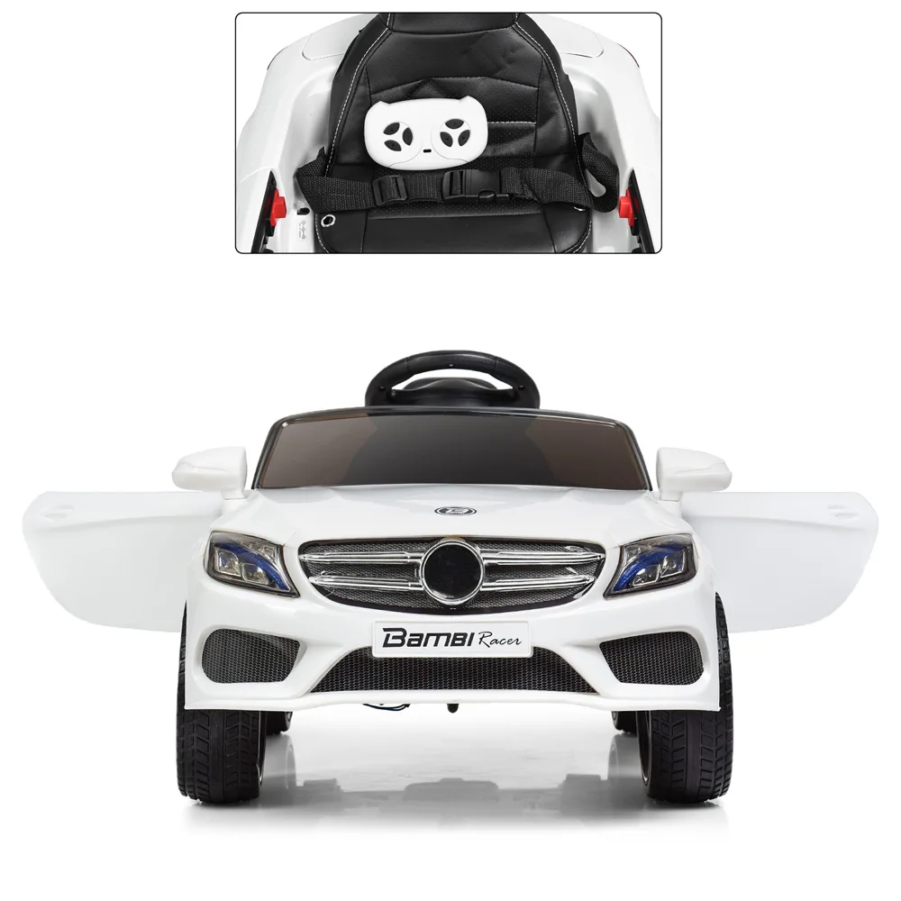 Дитячий електромобіль Mercedes, м’які EVA колеса, зможе розважити дитину музикою, а також світловими ефектами, у автомобіля відкриваються двері, що надає йому більшої реалістичності.