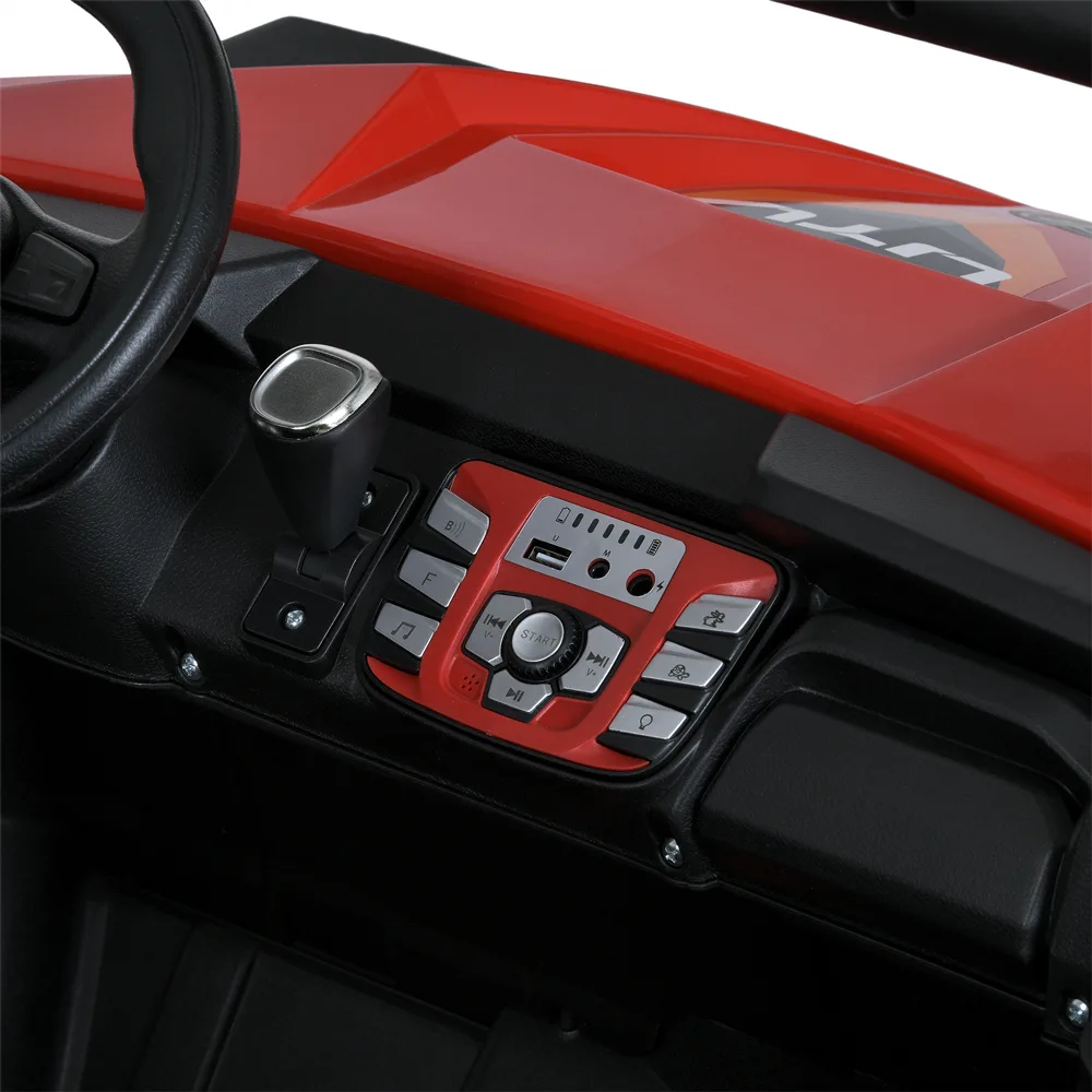 🟡Повнопривідний та функціональний джип має двомісне сидіння, завдяки чому на ньому одночасно зможуть їздити двоє дітей, сидіння виконане з екошкіри, діток можна пристебнути з ремінцем безпеки