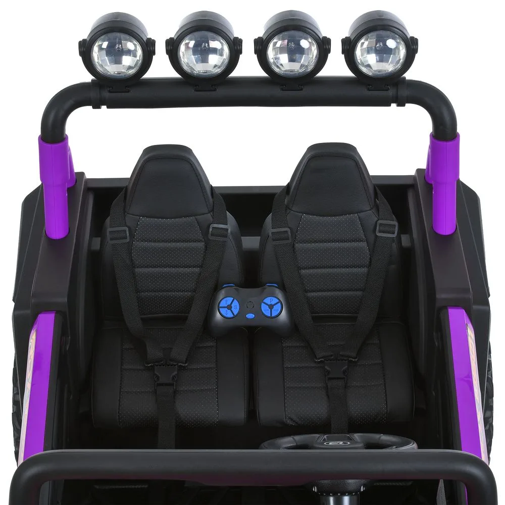 🟡Повнопривідний та функціональний джип має двомісне сидіння, завдяки чому на ньому одночасно зможуть їздити двоє дітей, сидіння виконане з екошкіри, діток можна пристебнути з ремінцем безпеки