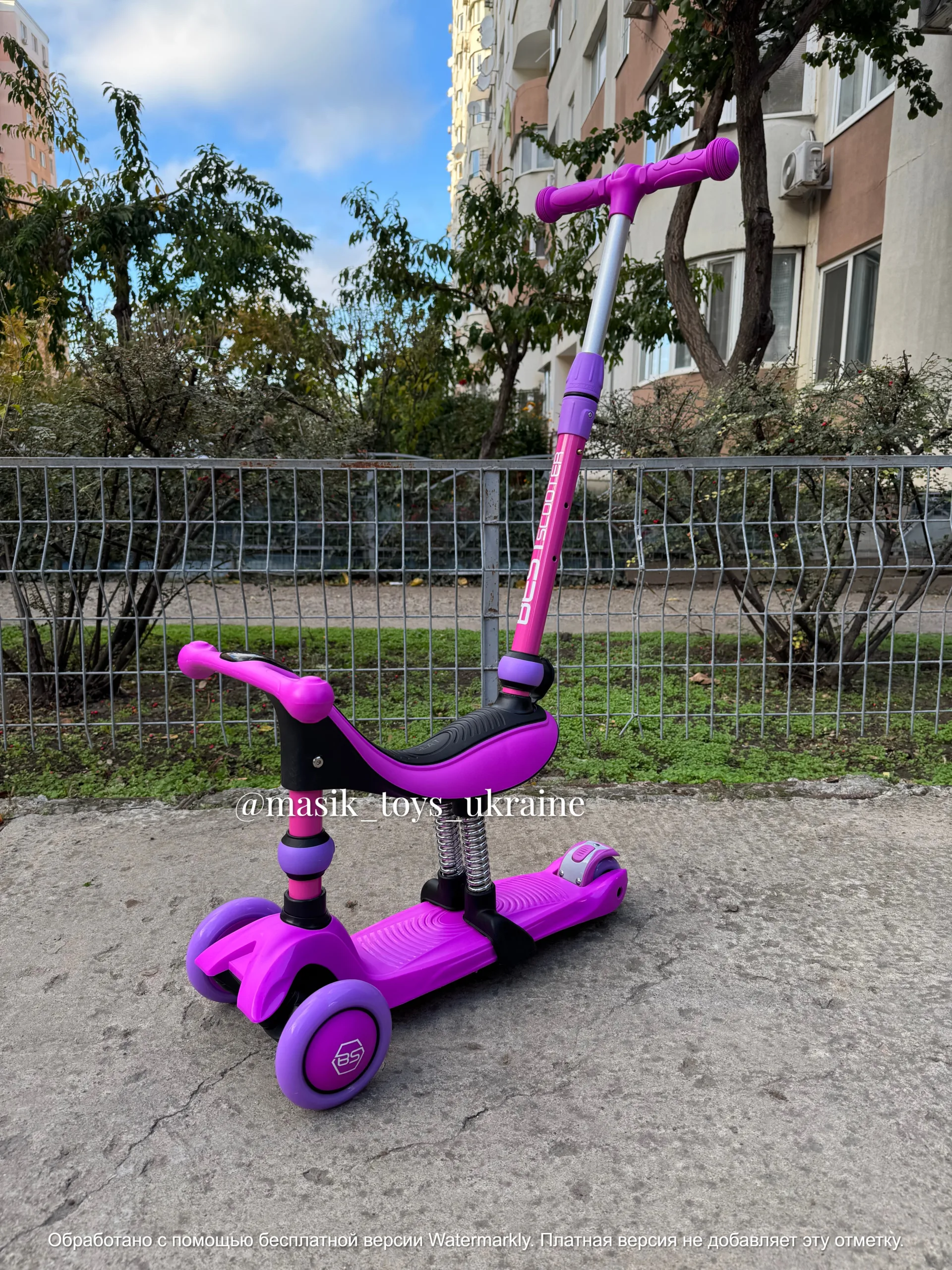 ✔️Батьківська ручка переставляється наперед і стає кермом самокату.