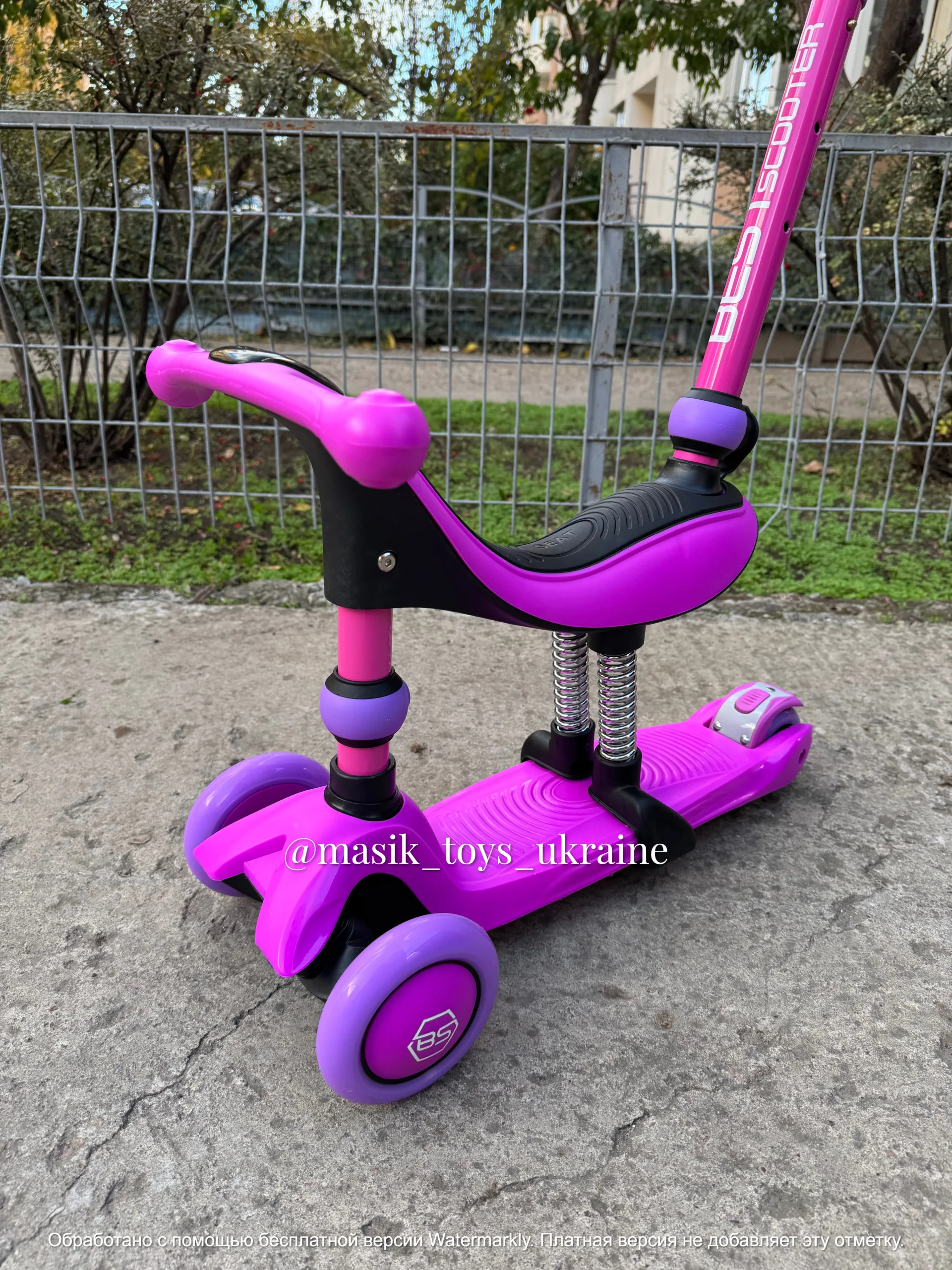 Велобіг – самокат з батьківською ручкою та амортизаторами Best Scooter
