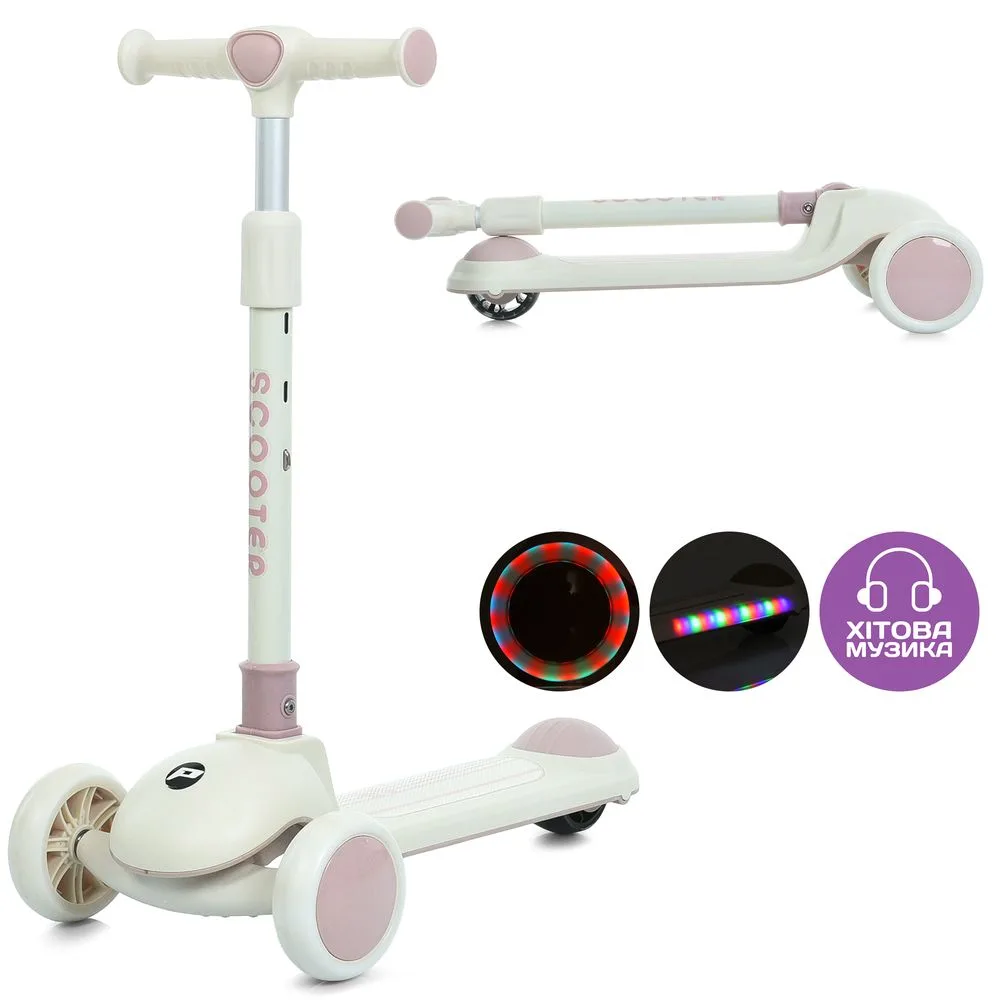 Самокат кермо складається, музика, підсвітка JR3-126-P рожевий