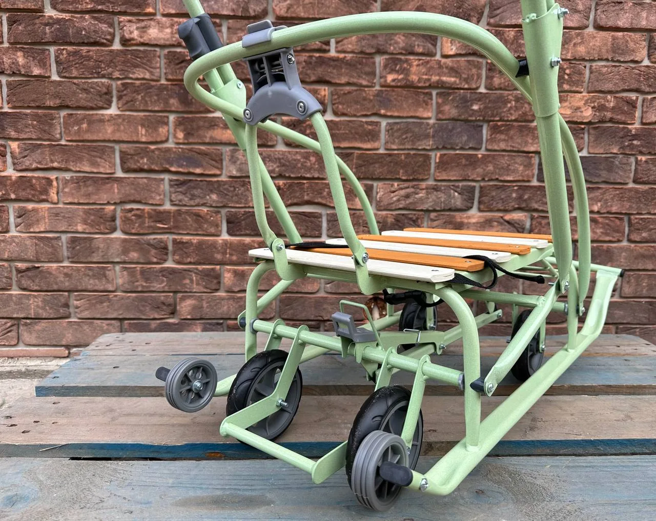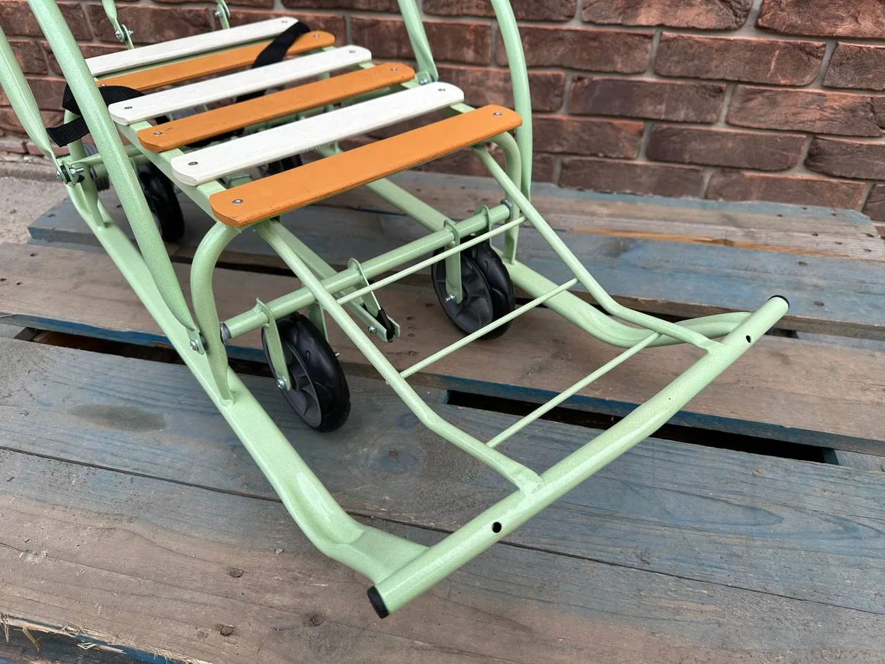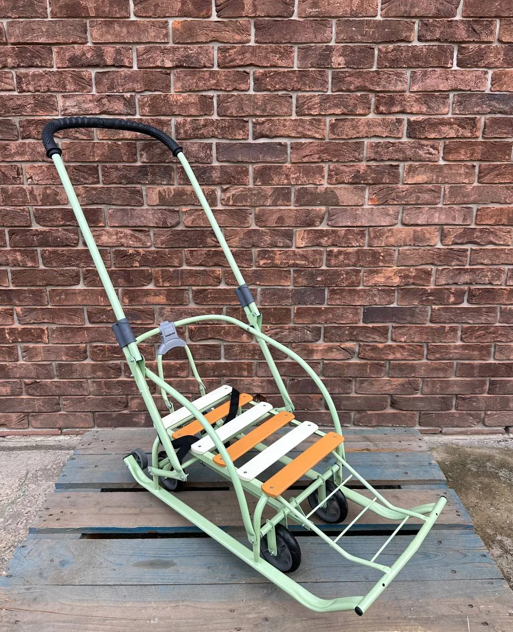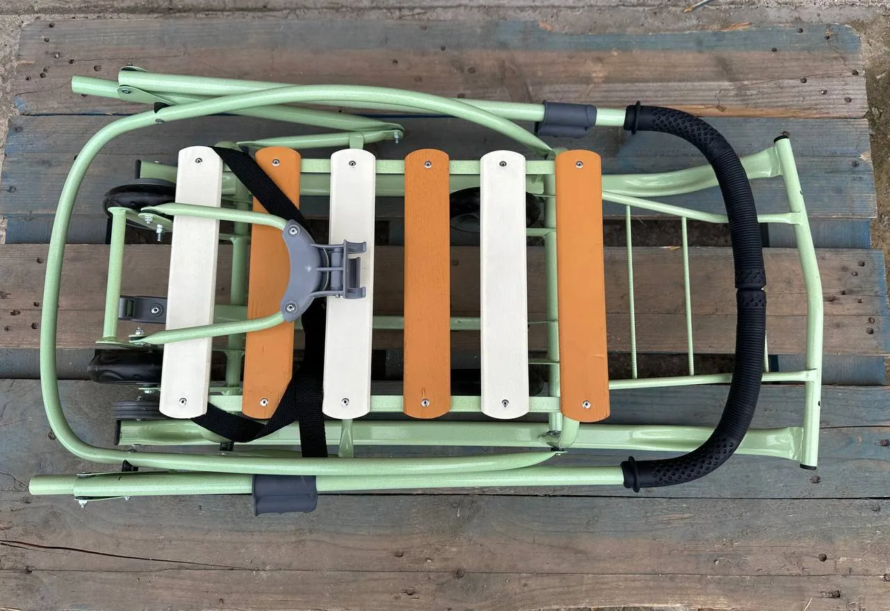 Санки-трансформери з колесами "Мрія" стигле яблукоСанки-трансформери з колесами “Мрія” стигле яблуко