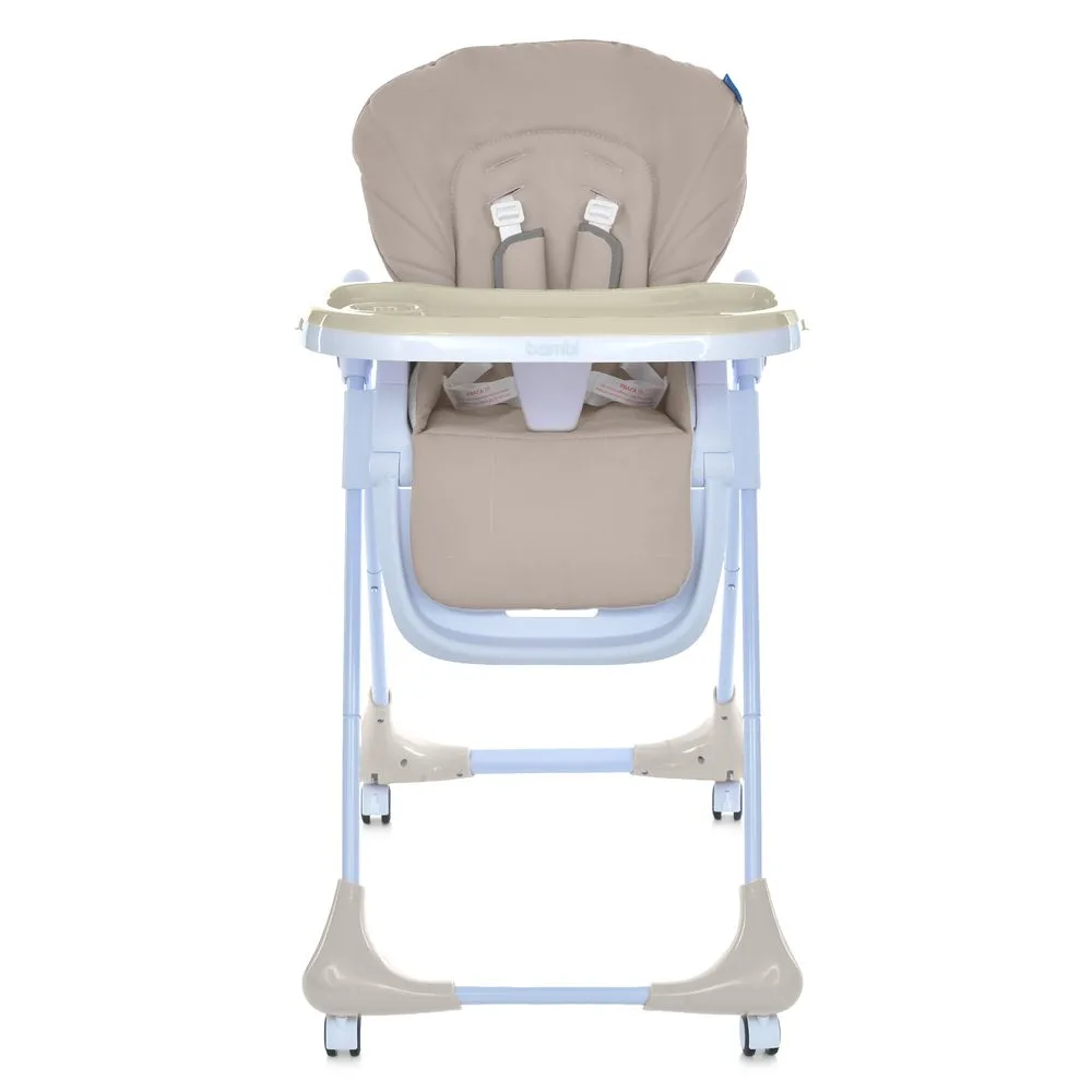 Стільчик для годування від 6ти місяців, спинка та висота регулюються, складається для зберігання, чохол з еко шкіри, колеса зі стопором