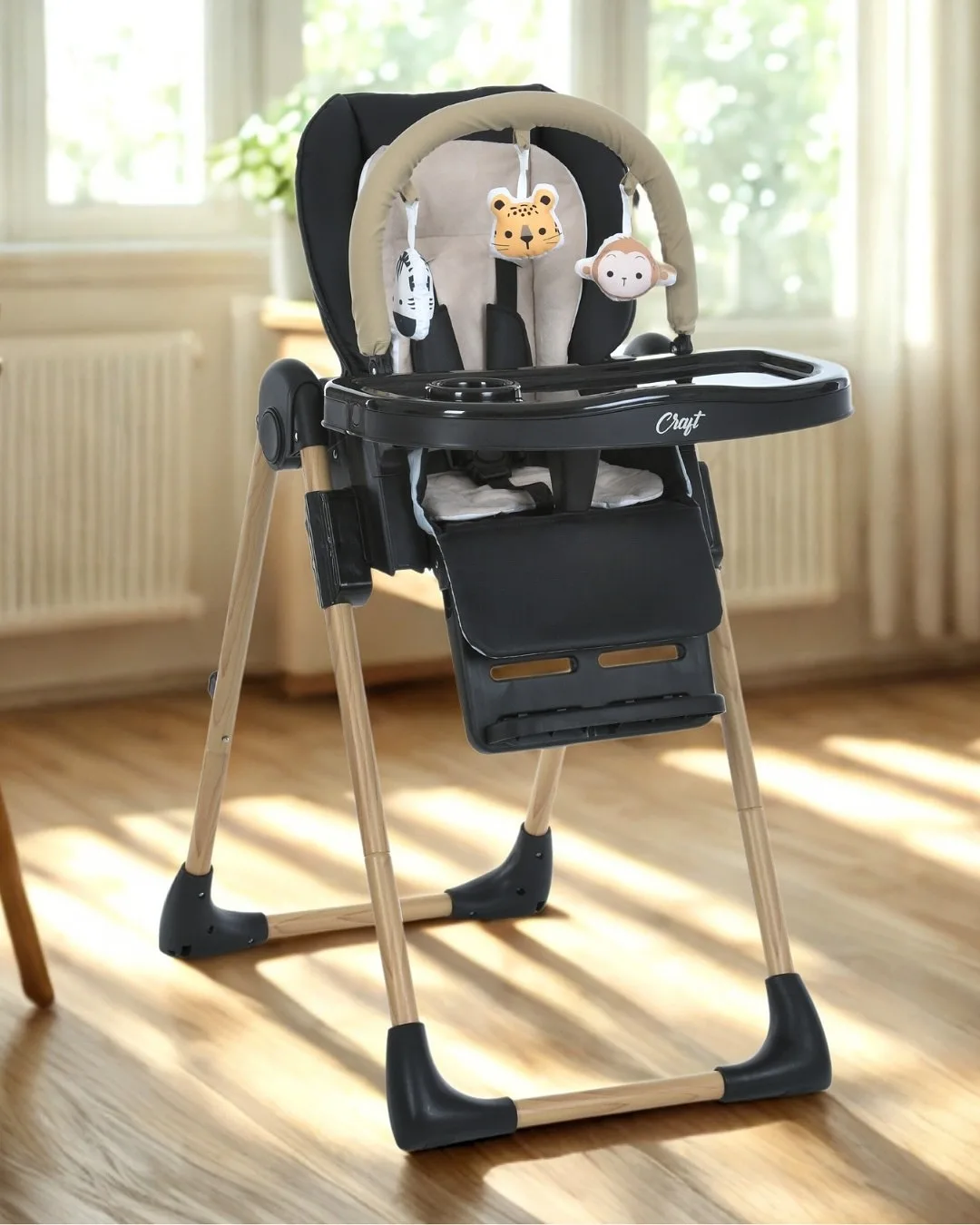 Стільчик для годування CRAFT від El Camino, дуга з іграшками, 5-точкові ремені безпеки, матрац, 2 колеса, чохол з еко шкіри
