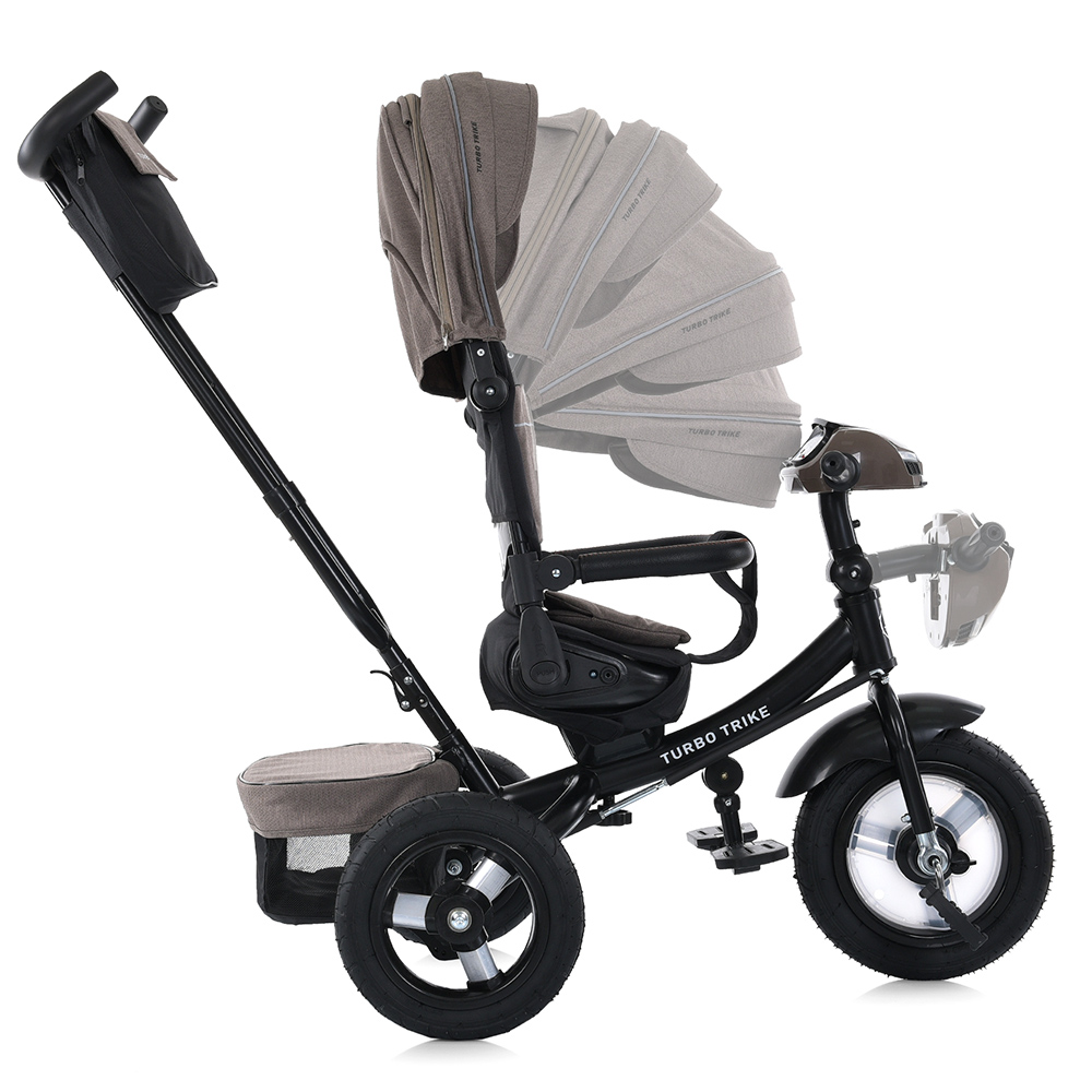 Велосипед на гумових не надувних колесах TURBO TRIKE, музична фара, сидіння повертається, спинка опускається, трансформується у звичайний триколісний велосипед
