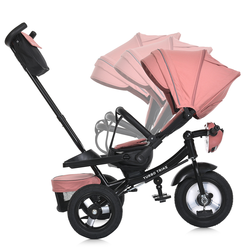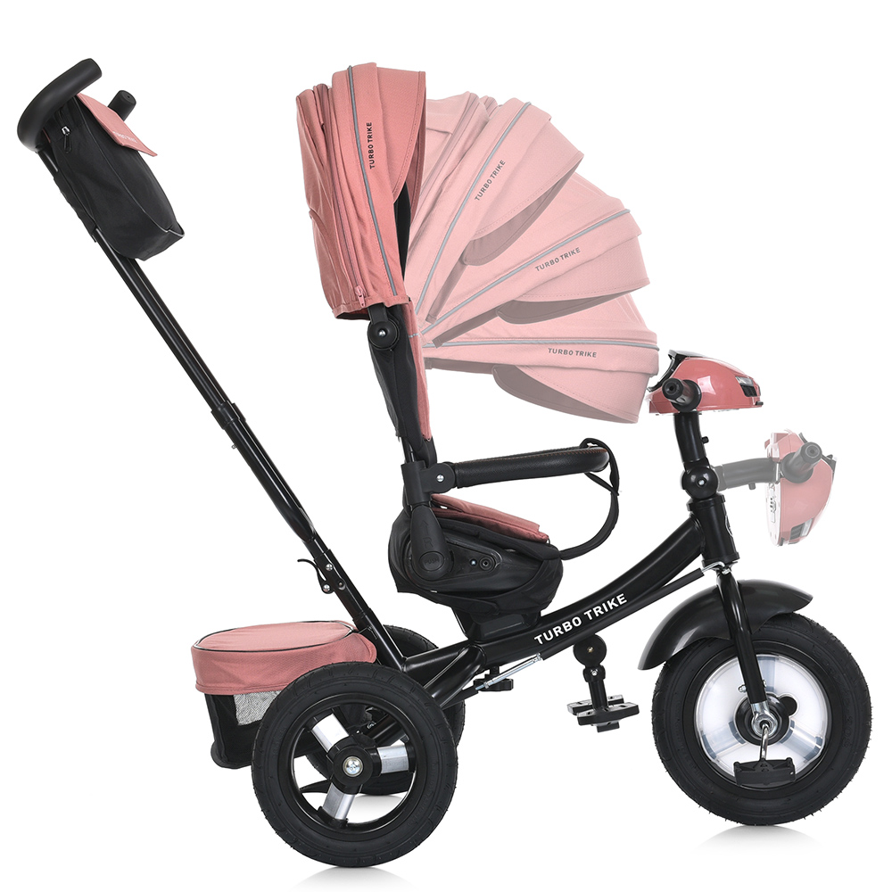 Велосипед на гумових не надувних колесах TURBO TRIKE, музична фара, сидіння повертається, спинка опускається, трансформується у звичайний триколісний велосипед
