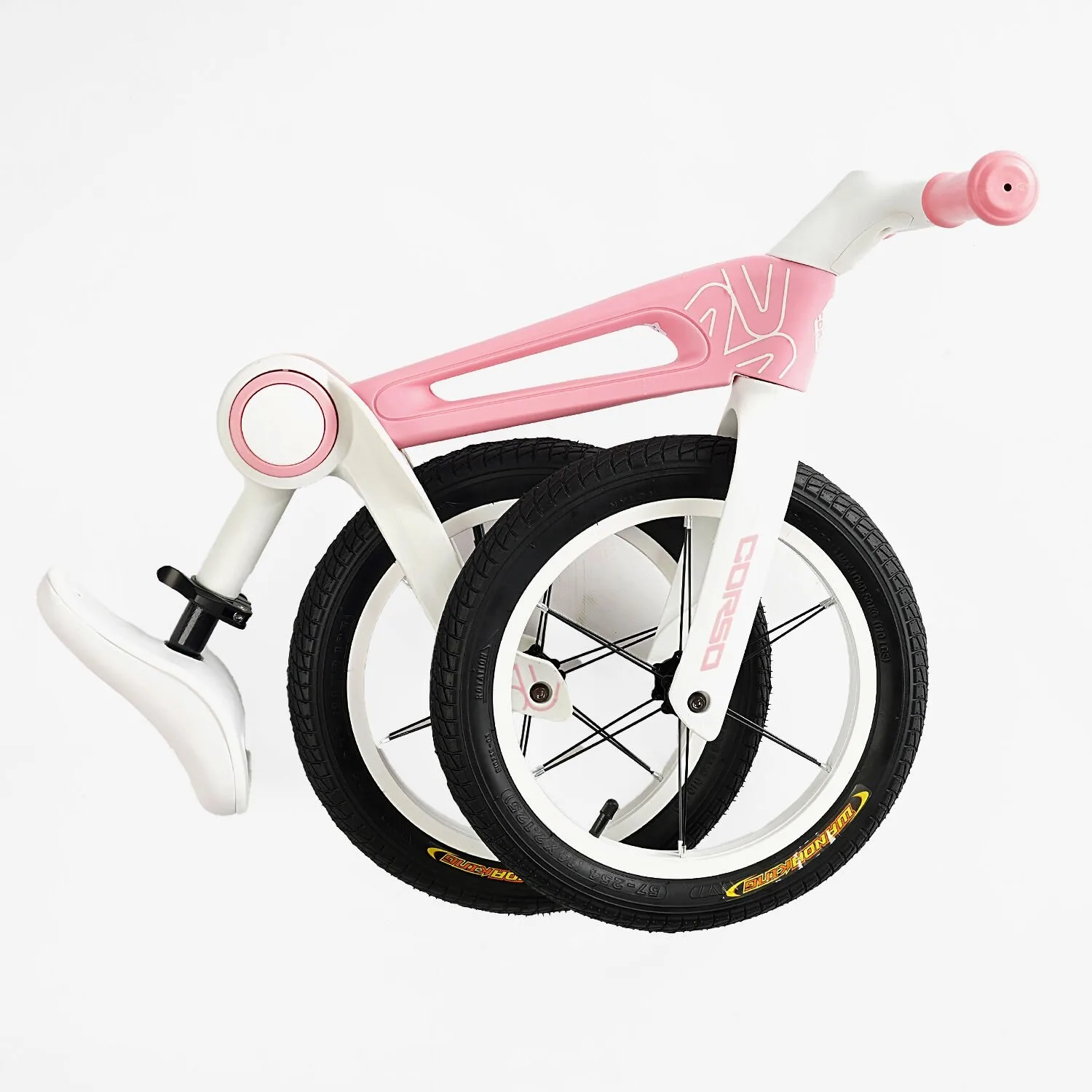 Надувні колеса на підшипниках розміром 14 дюймів відмінно впораються з амортизацією при їзді міською бруківкою і стежкою в парку, а їх ширина у 2,125 дюйма дає додаткову стійкість, що особливо важливо для маленьких дітей, які тільки катаються.