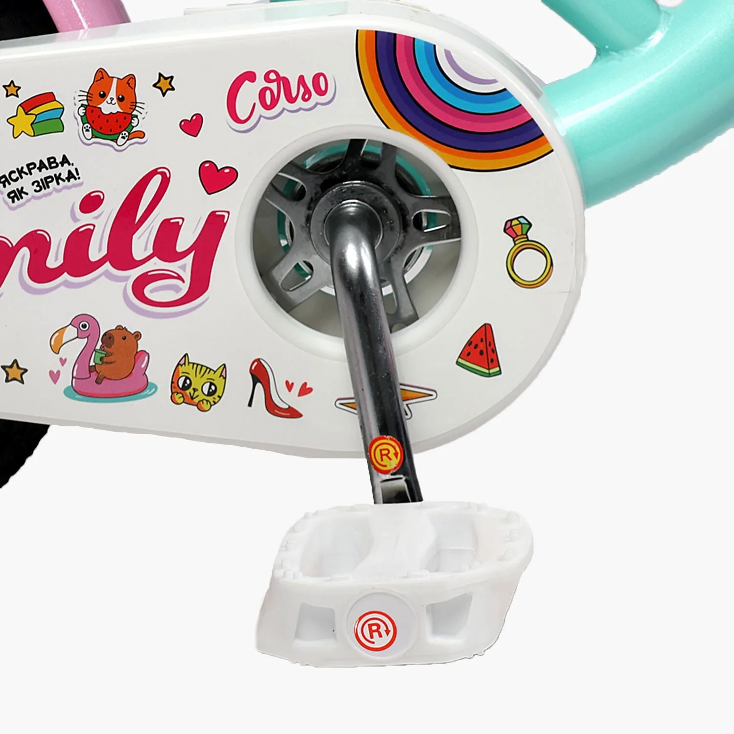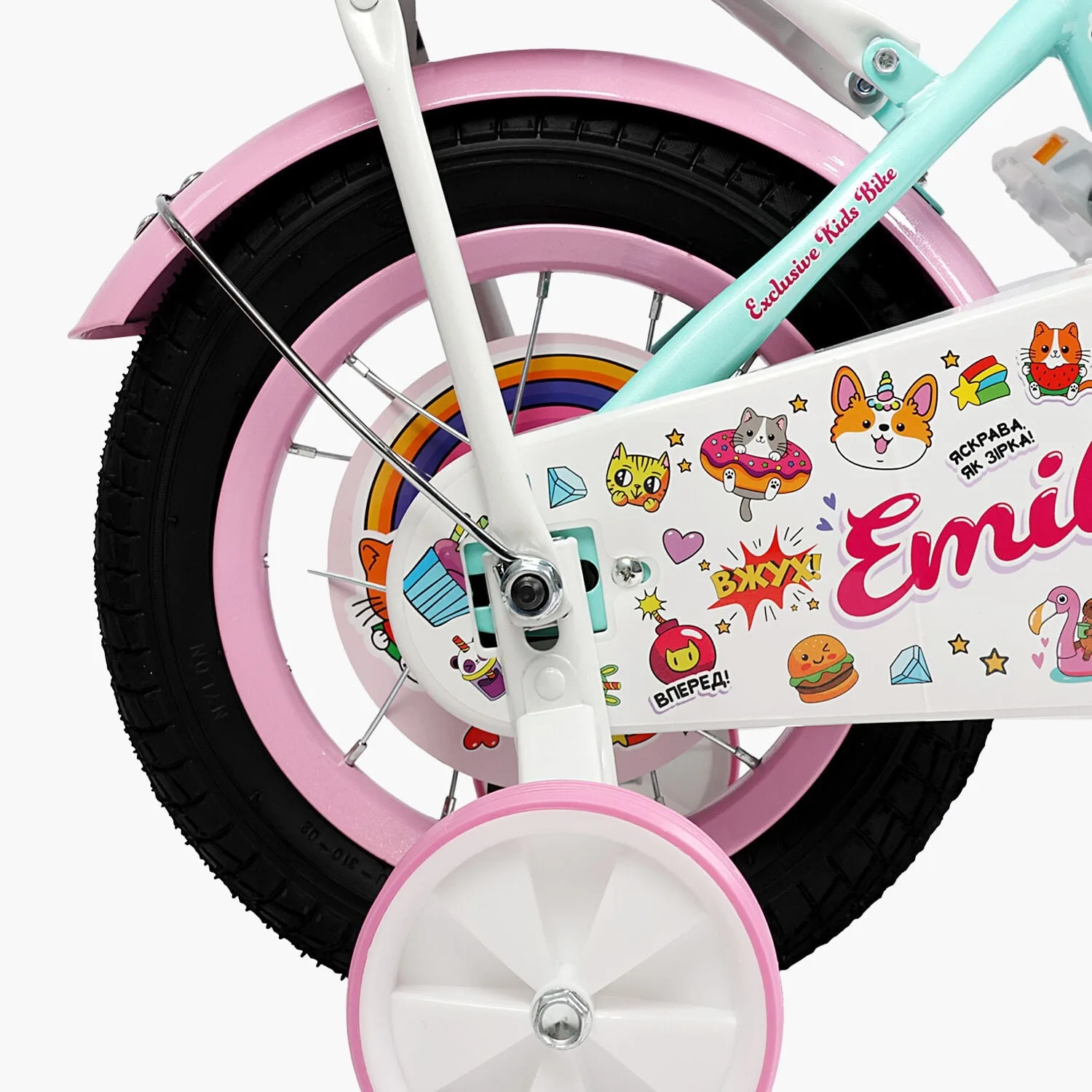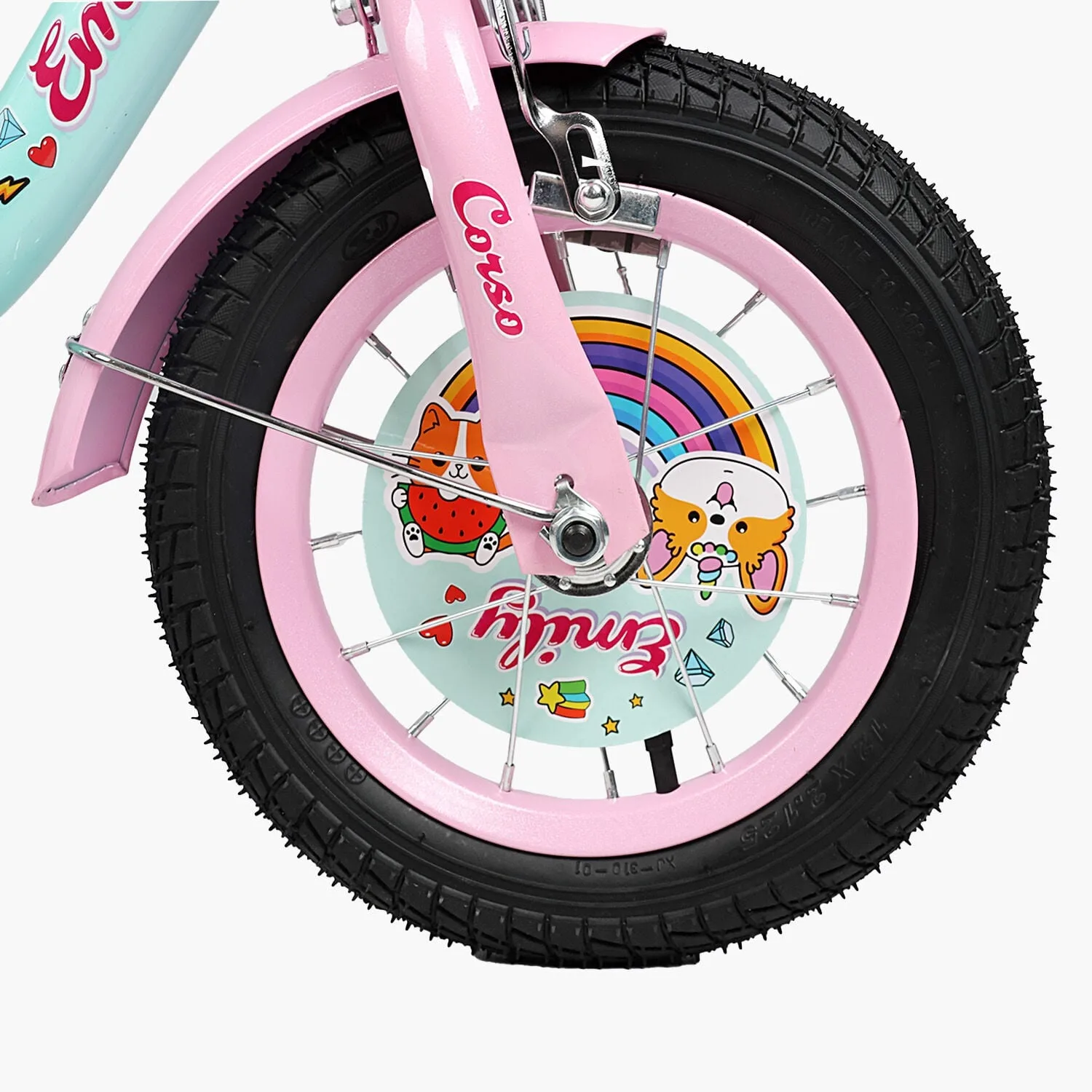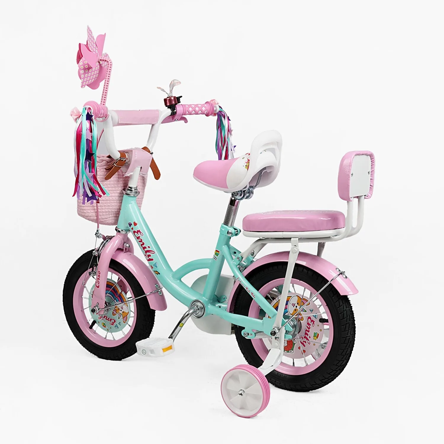 Велосипед 12" Corso Emily кошик, прикраси, ручне гальмо, дзвіночок бірюзаВелосипед 12″ Corso Emily кошик, прикраси, ручне гальмо, дзвіночок бірюза