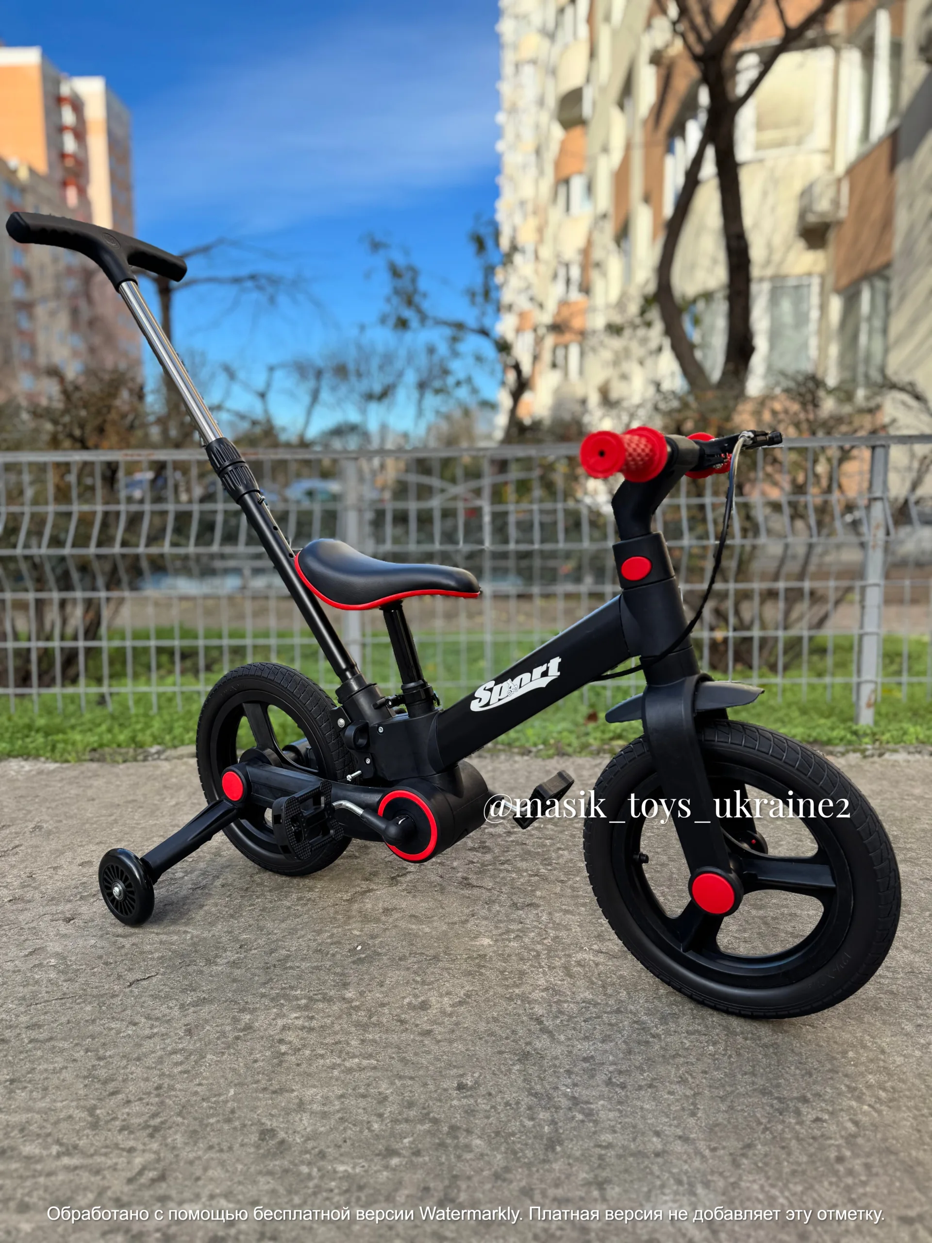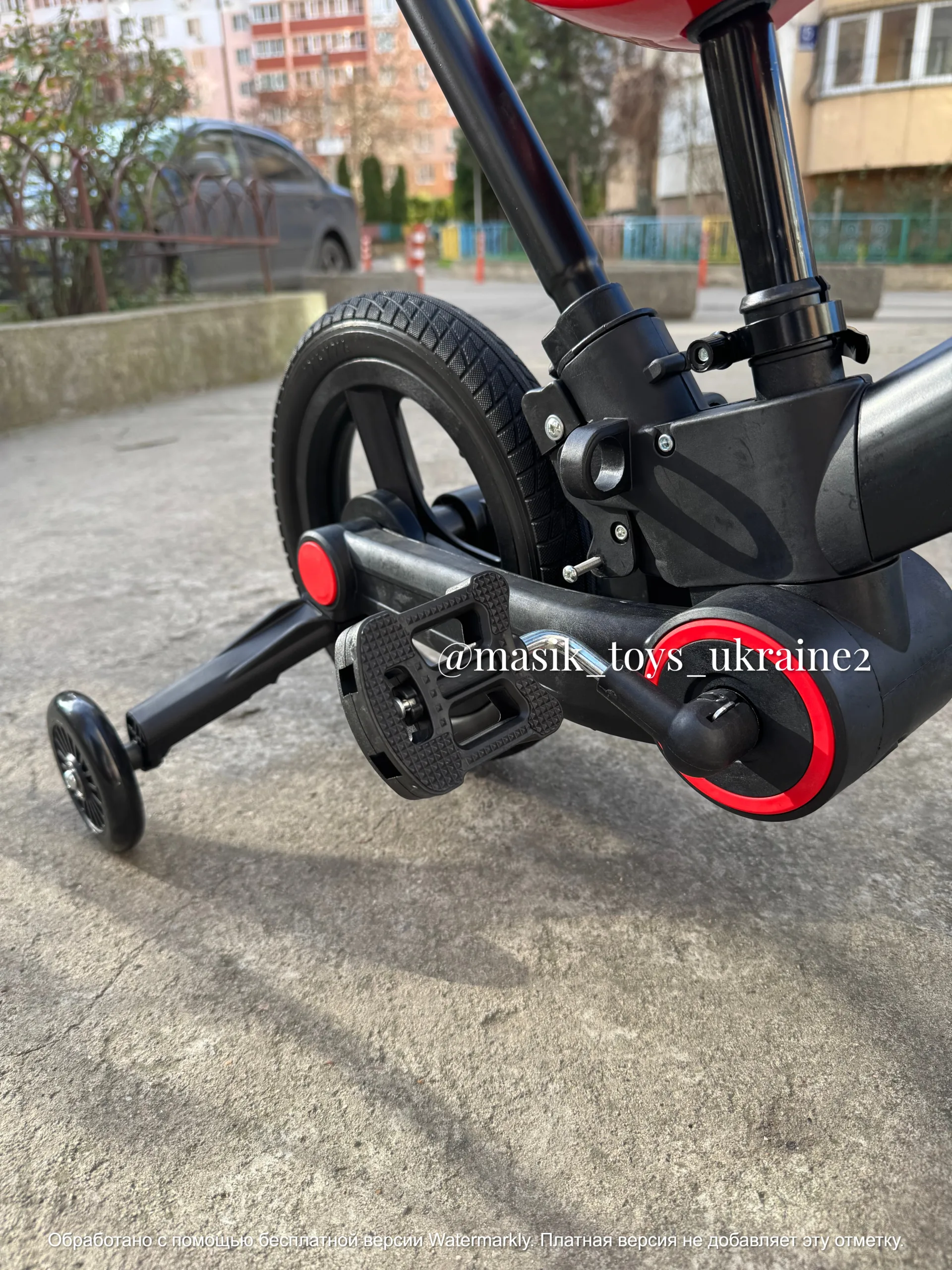 Дитячий велосипед-трансформер перетворюється в велобіг, а також складається навпіл одним натисканням кнопки